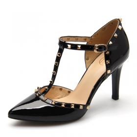 莱尔斯丹 2017春新款复古粗跟圆头中跟高跟鞋女鞋通勤单鞋8M43701