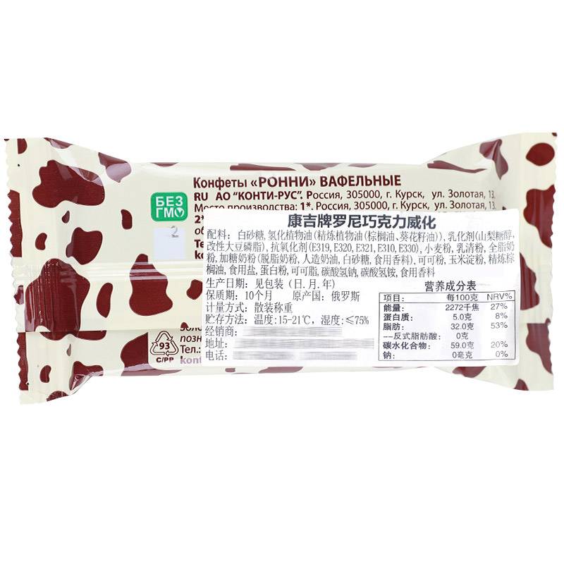 俄罗斯进口零食品 POHHN小牛大奶牛巧克力威化夹心饼干15包约500g 500g/袋 约15包