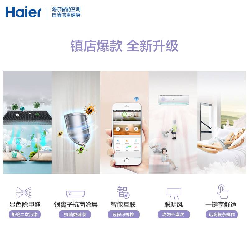 Haier/海尔 KFR-33GW/10EBBAL13U1 1.5匹智能壁挂式家用空调挂机 智能操控 快速冷暖 送装一体